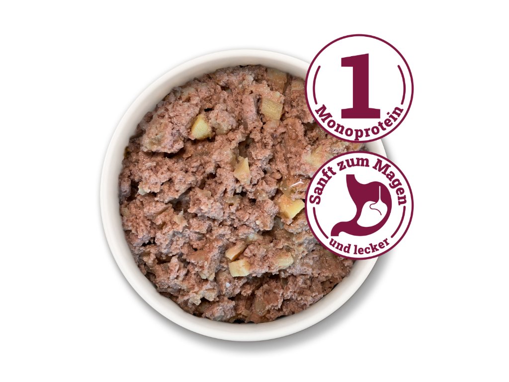 Složení: 50,00 % krůtí (maso, srdce, krk, játra), 18,95 % vývar, 15,00 % pastinák, 10,00 % brambory, 3,00 % fenykl, 1,00 % cuketa, 1,00 % pivovarské kvasnice, 0,50 % pupalkový olej, 0,50 % olej z tresčích jater, 0,05 % chaluha kelp (Ascophyllum nodosum) z kontrolované ekologické produkce