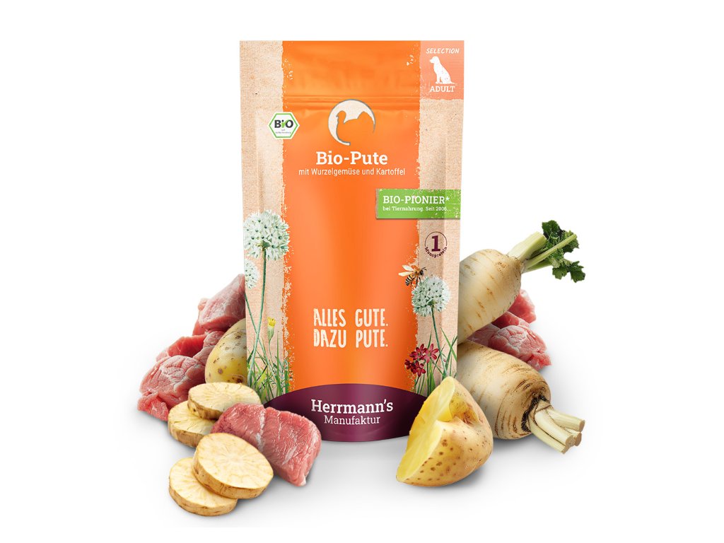 BIO krůtí kapsička Herrmann’s je zdravá a chutná volba pro každodenní krmení – dopřejte svému mazlíčkovi tu nejvyšší kvalitu v každé misce.