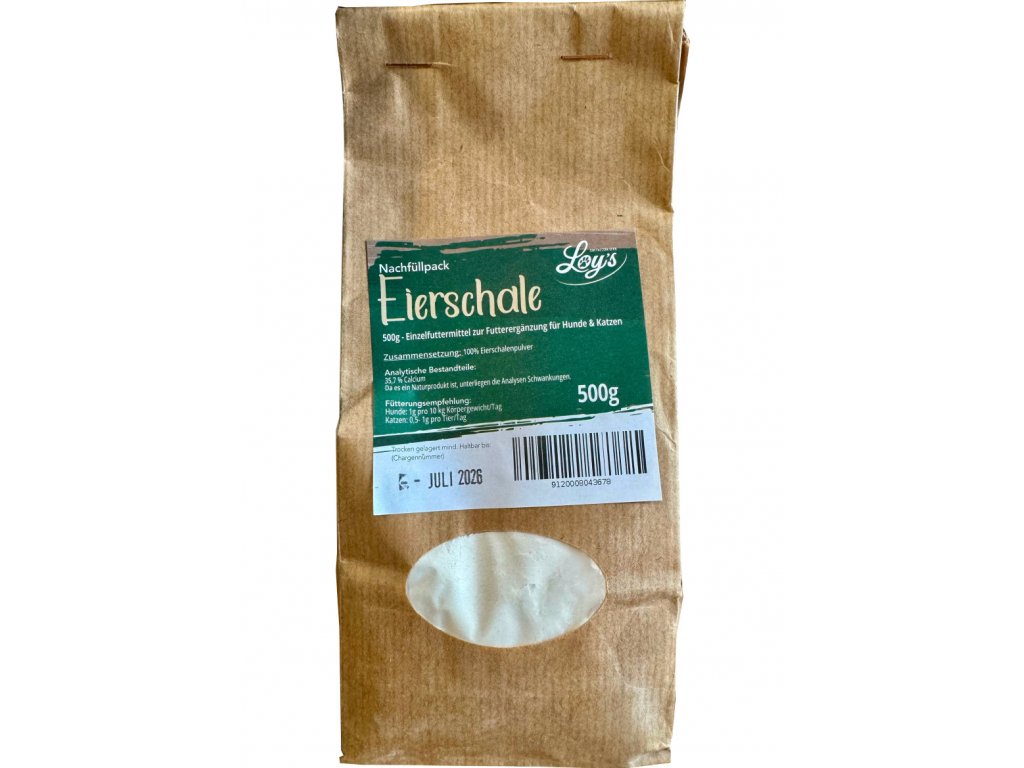 Prášek z vaječných skořápek jsou přirozenou surovinou, obdobně jako kosti, pes je pro jejich trávení a využití vápníku z nich velmi dobře přizpůsoben.