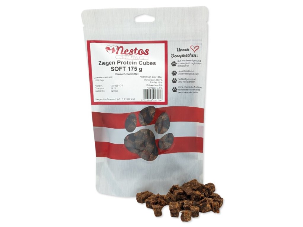 Měkké kozí kostičky jsou vytvořené na míru psům i kočkám - od štěňat po dospělé, včetně těch s citlivým zažíváním či potravinovými alergiemi. 100% kozí maso, žádná chemie, výborná stravitelnost a šetrné sušení na vzduchu - to je kvalita, kterou ocení každý chlupáč.